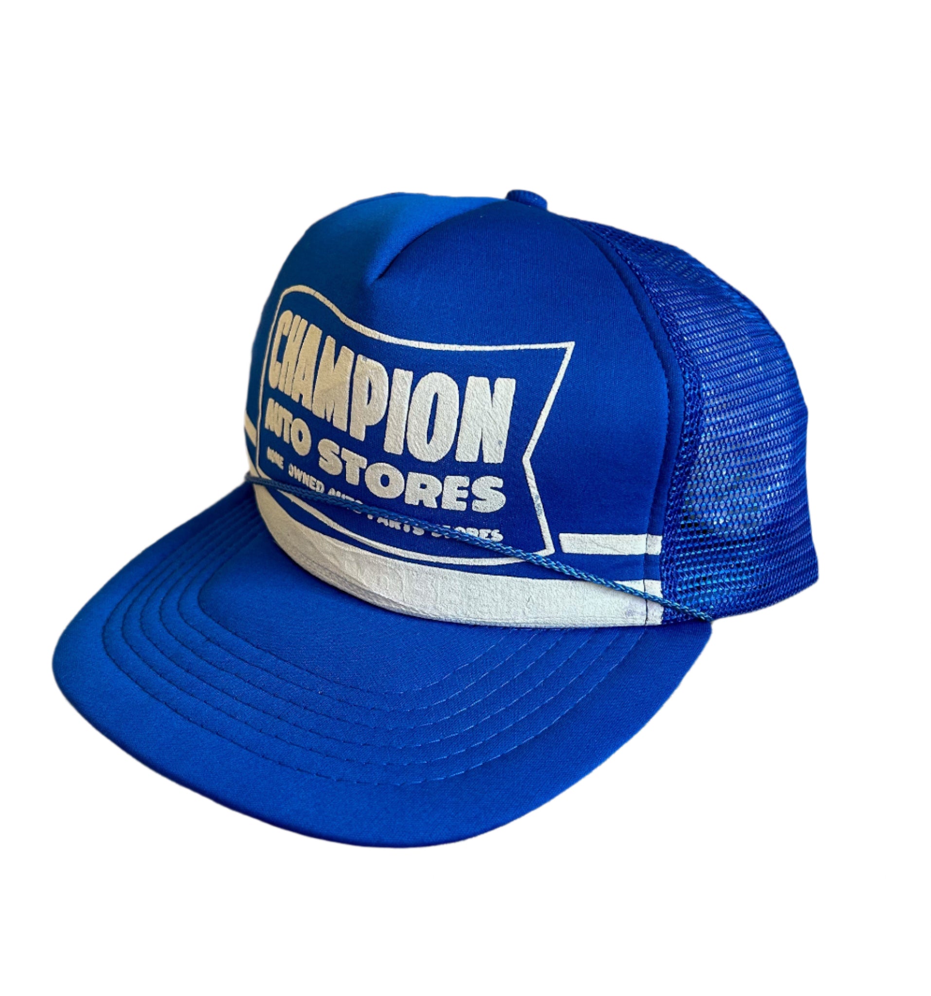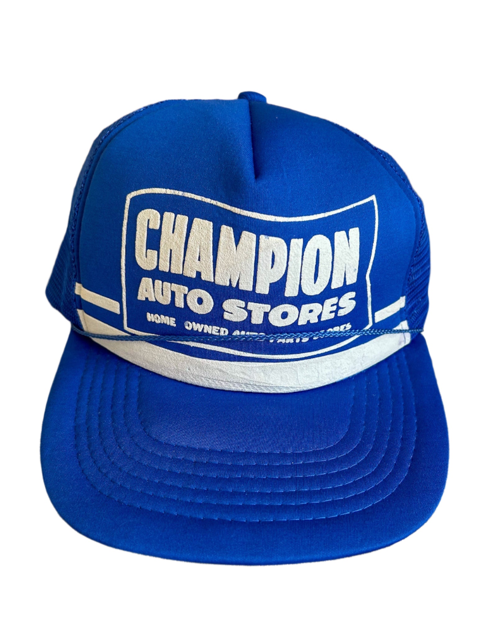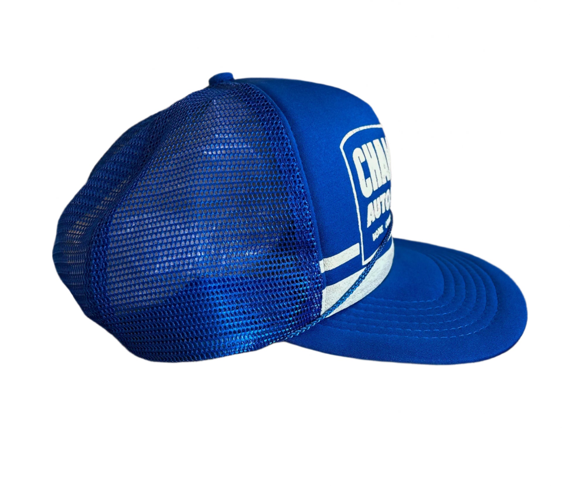 Vintage 1980s Champion Auto Stores Blue And White Cap