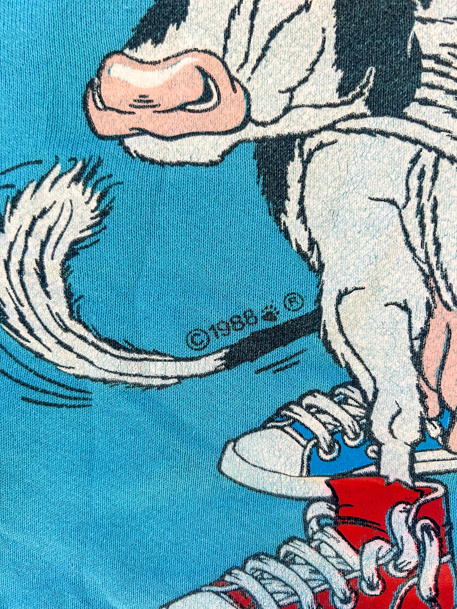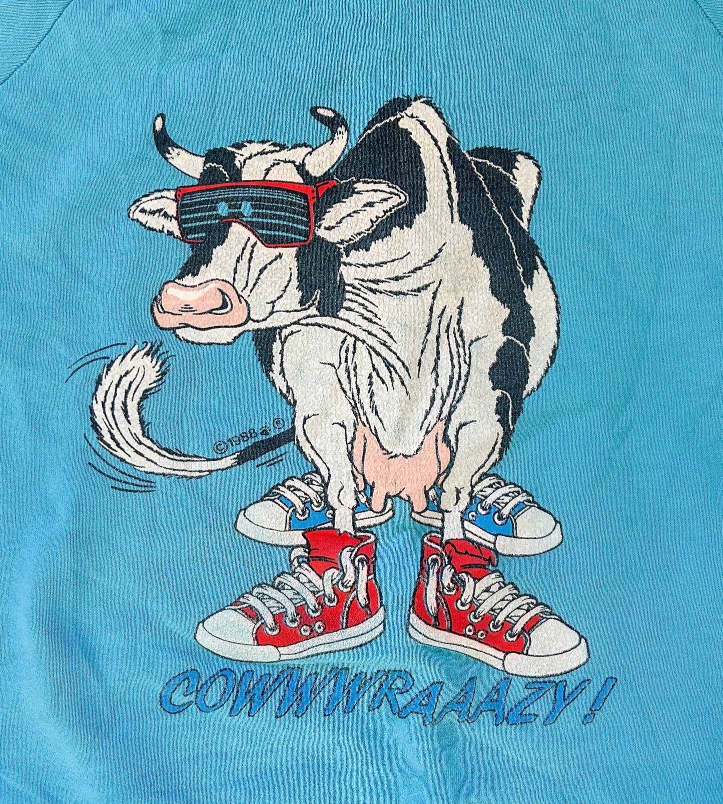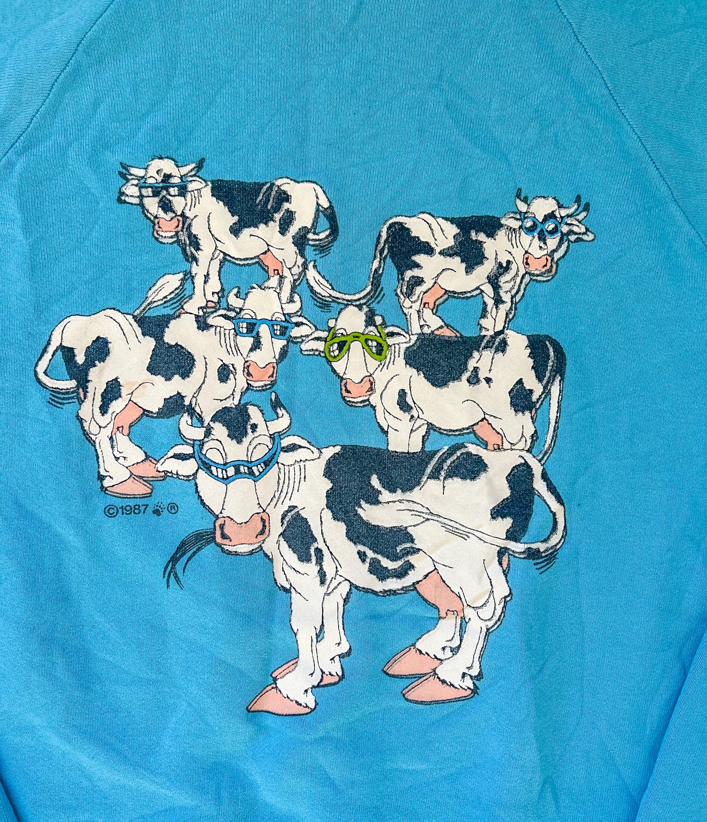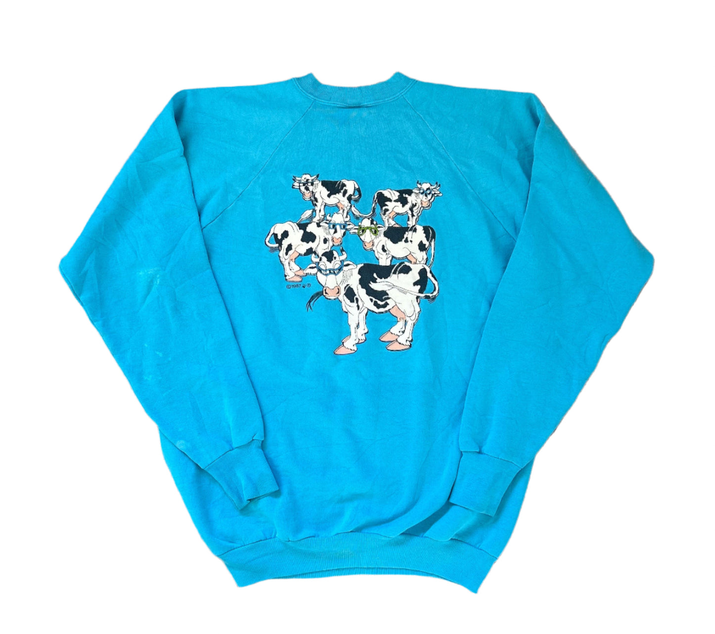 Vintage 1988 Original Cow Crazy Fruit Of The Loom Label Made USA Blue Cotton Sweatshirt XL