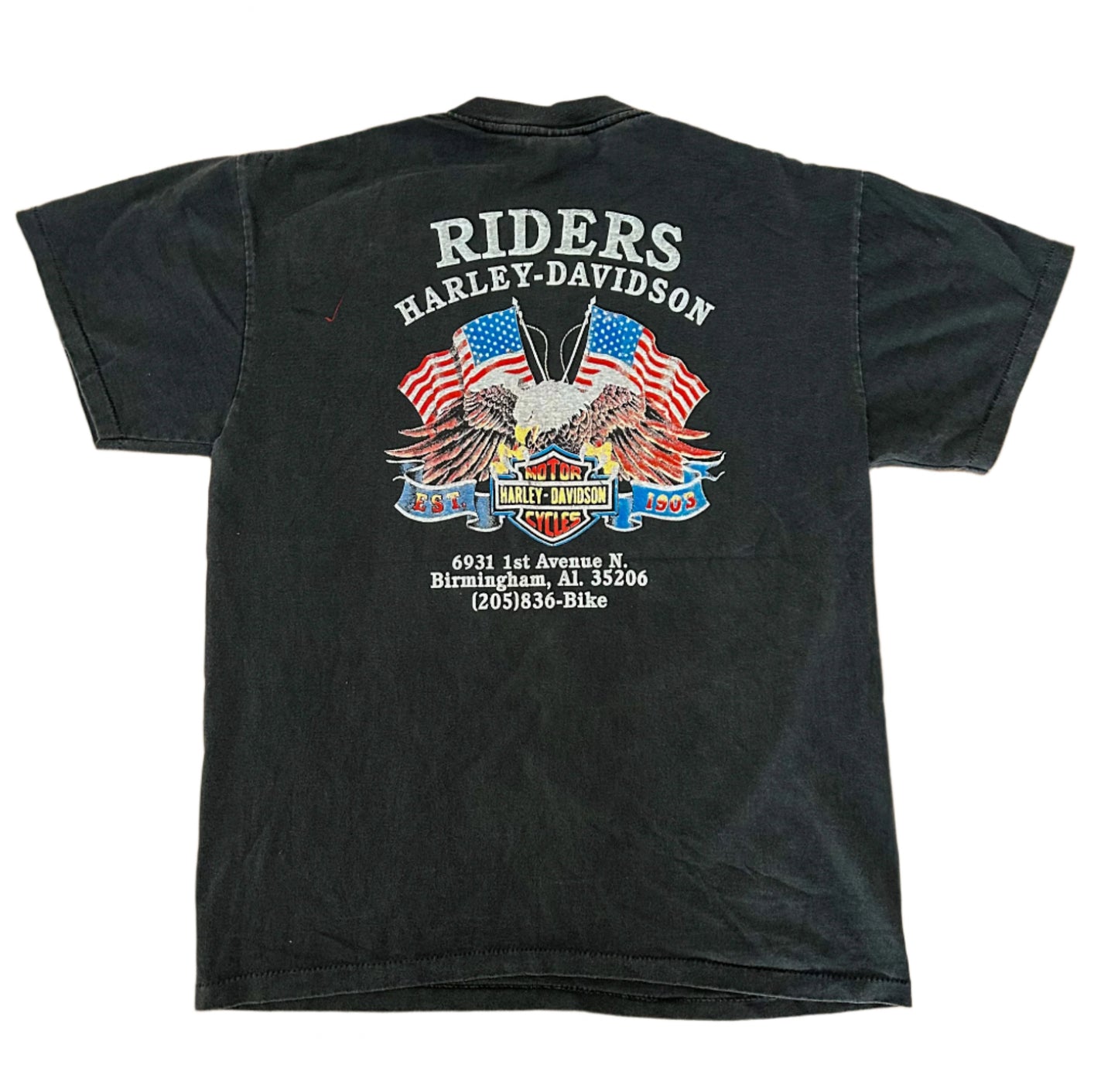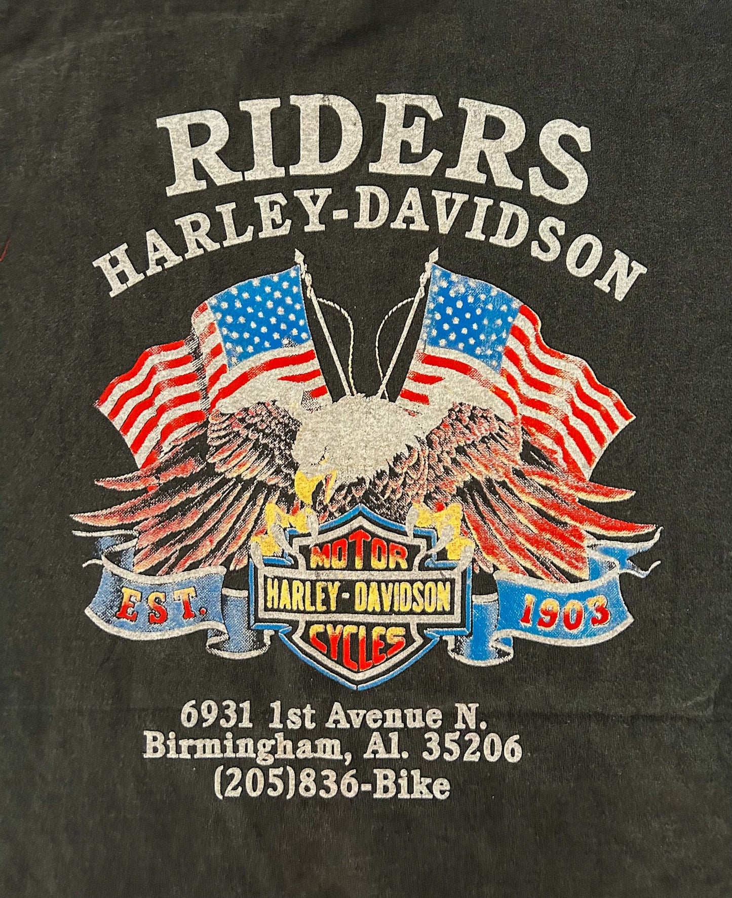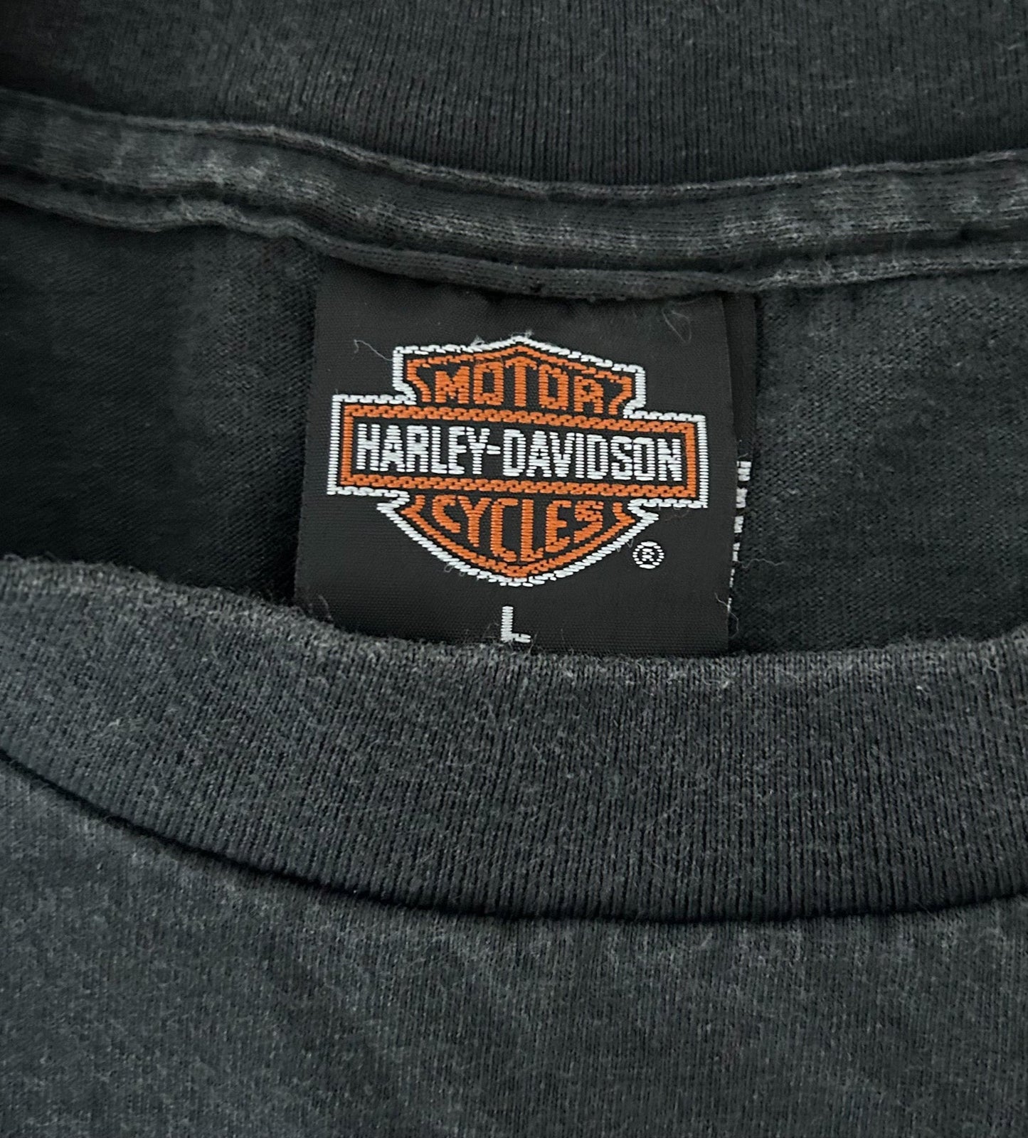 Vintage 1990 Harley Davidson Single Stitch Made USA Double Sided Print Last Biker On Earth Black Cotton T-shirt Large Rare