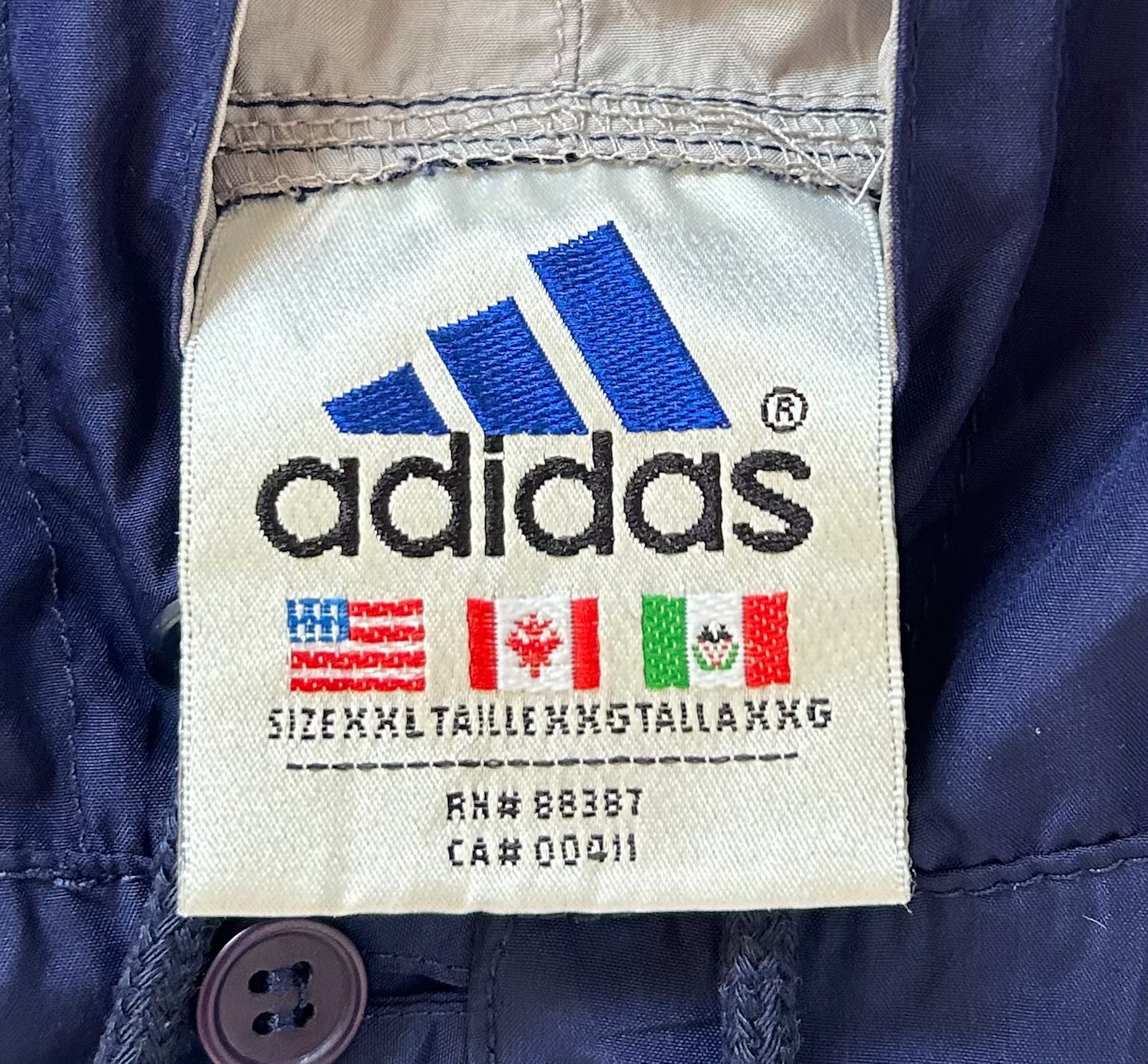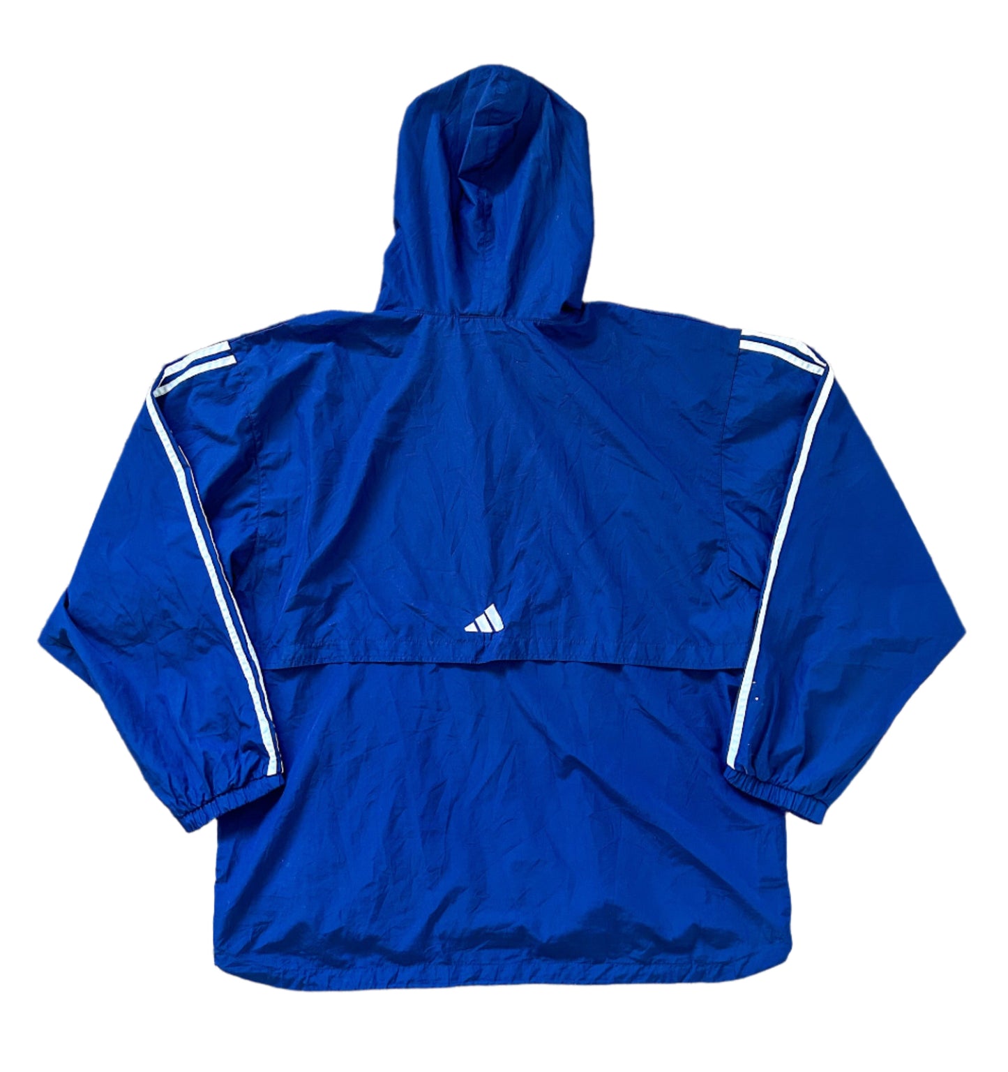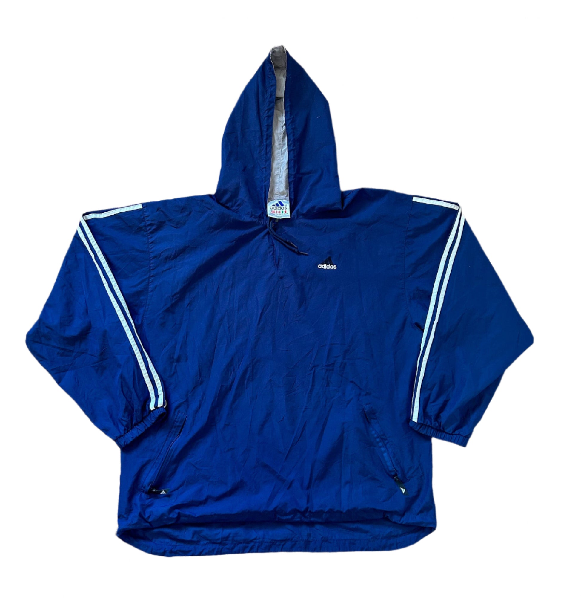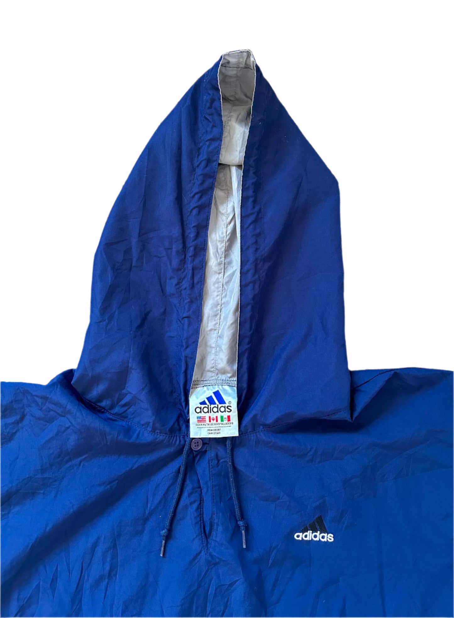 Vintage 1990s Adidas Label Hooded Blue Branded Windbreaker Jacket 2XL