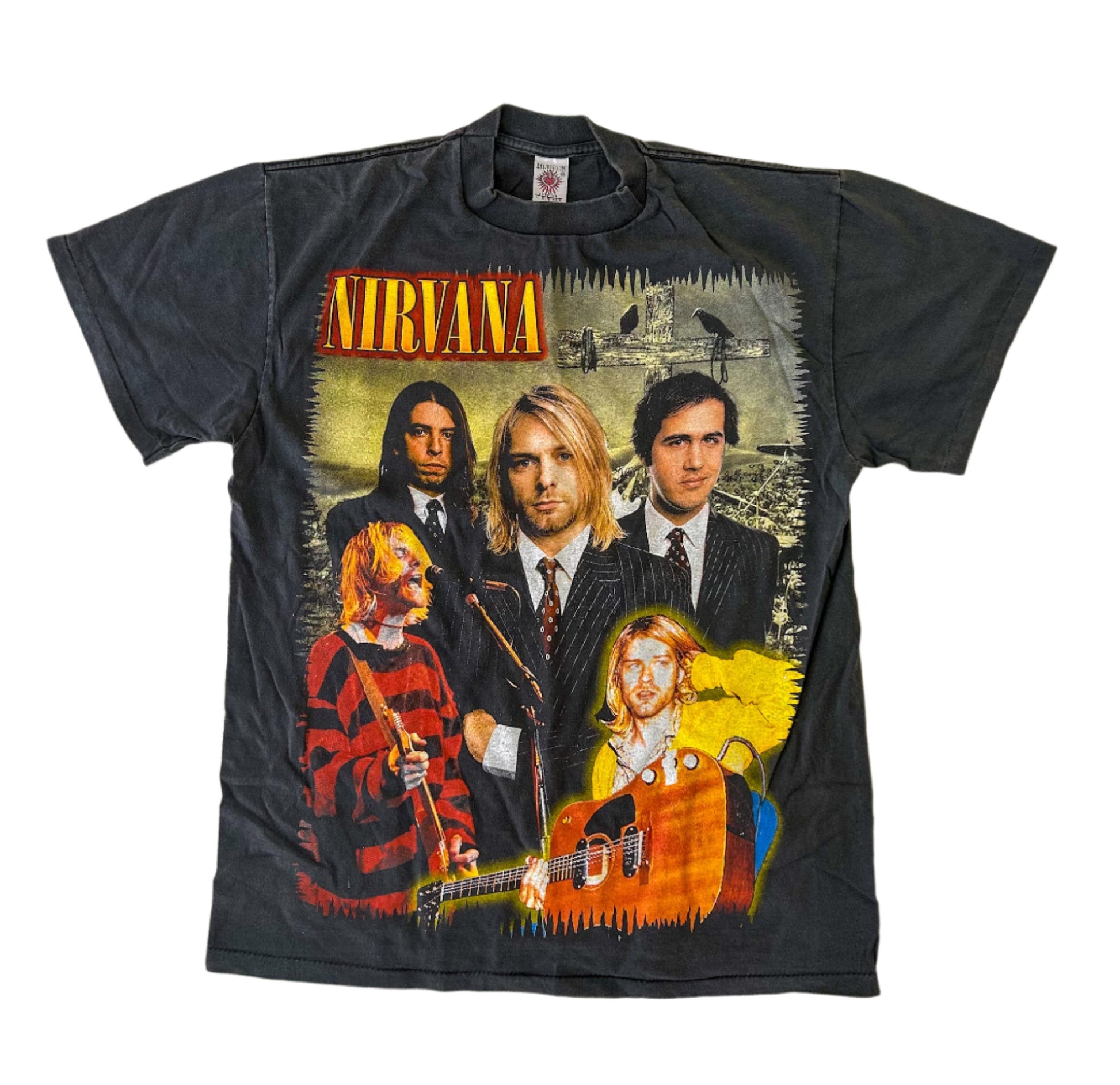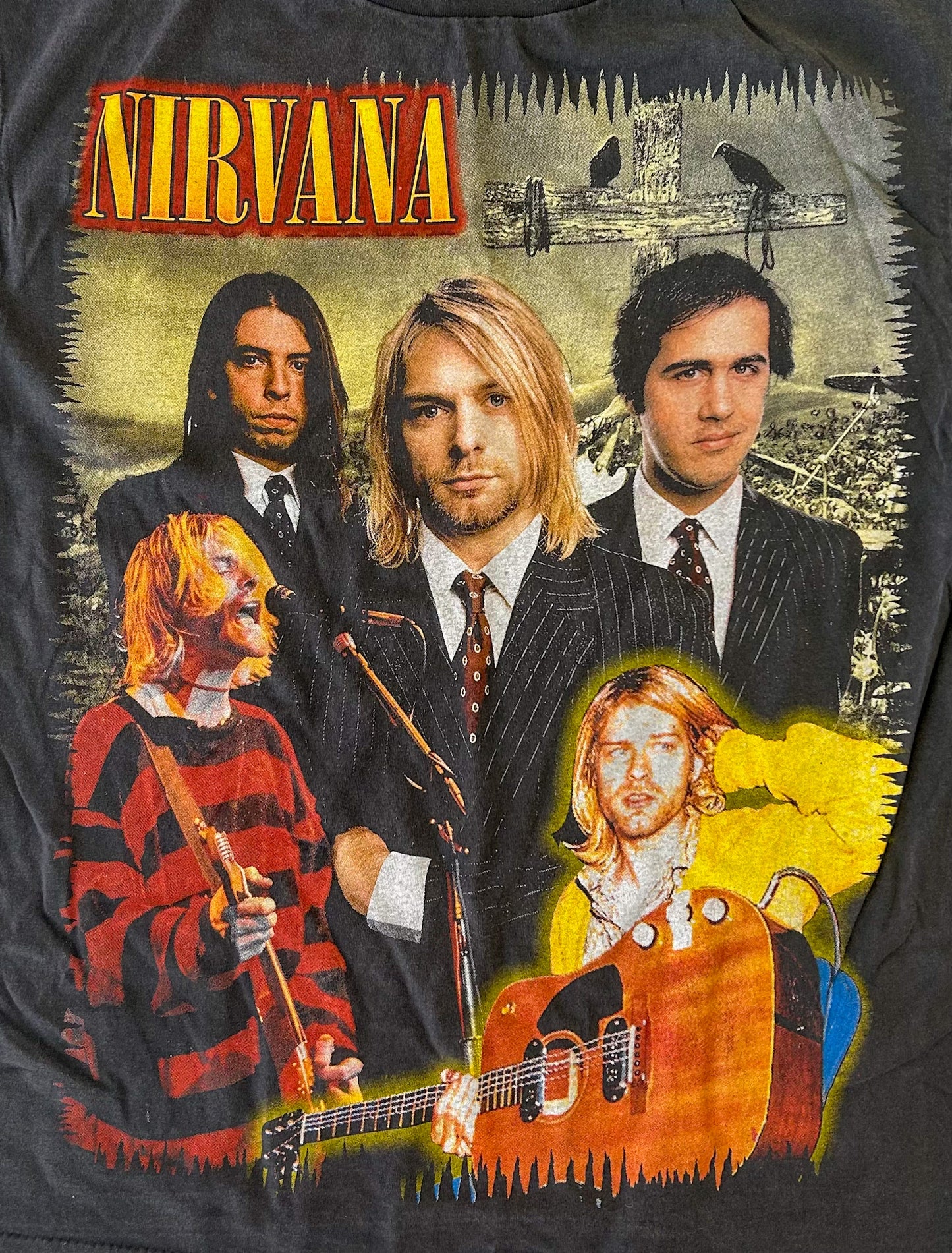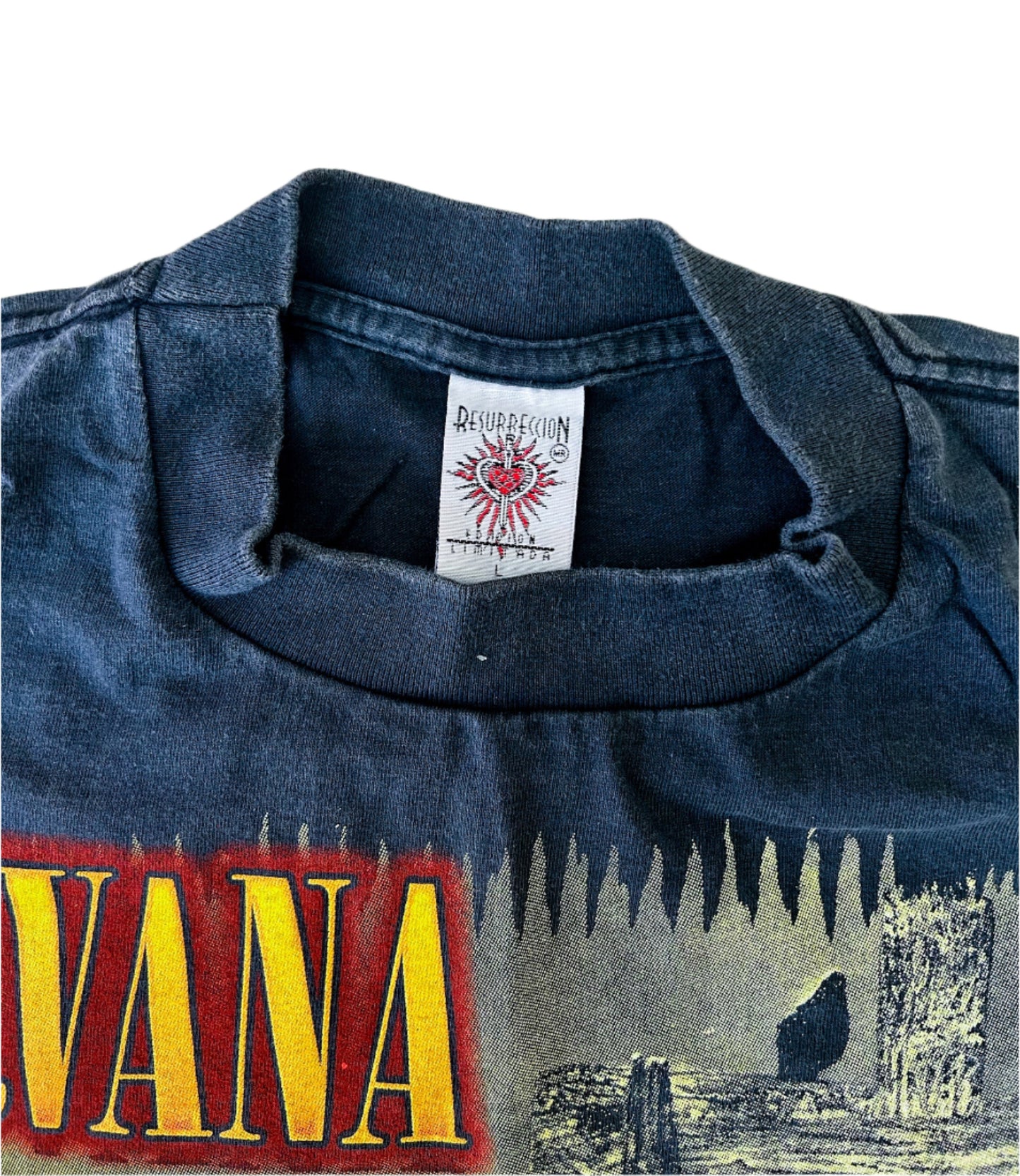 Vintage Resurreccion Label Nirvana Double Sided Print Single Stitch Black Cotton Band T-shirt Large Rare