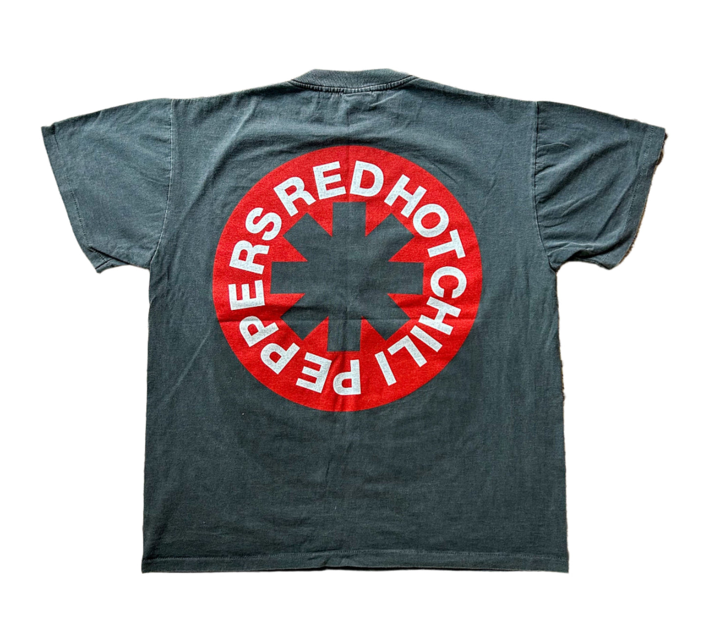 Large Red Hot Chili Peppers asterisk logo on back – instantly iconic