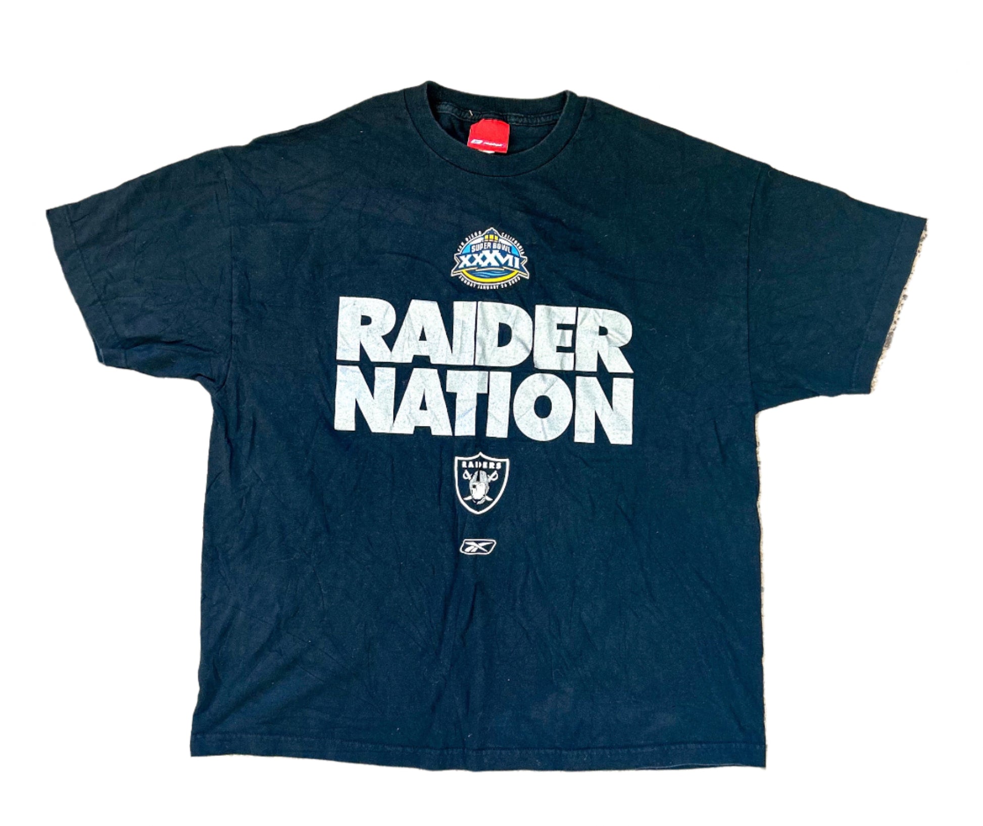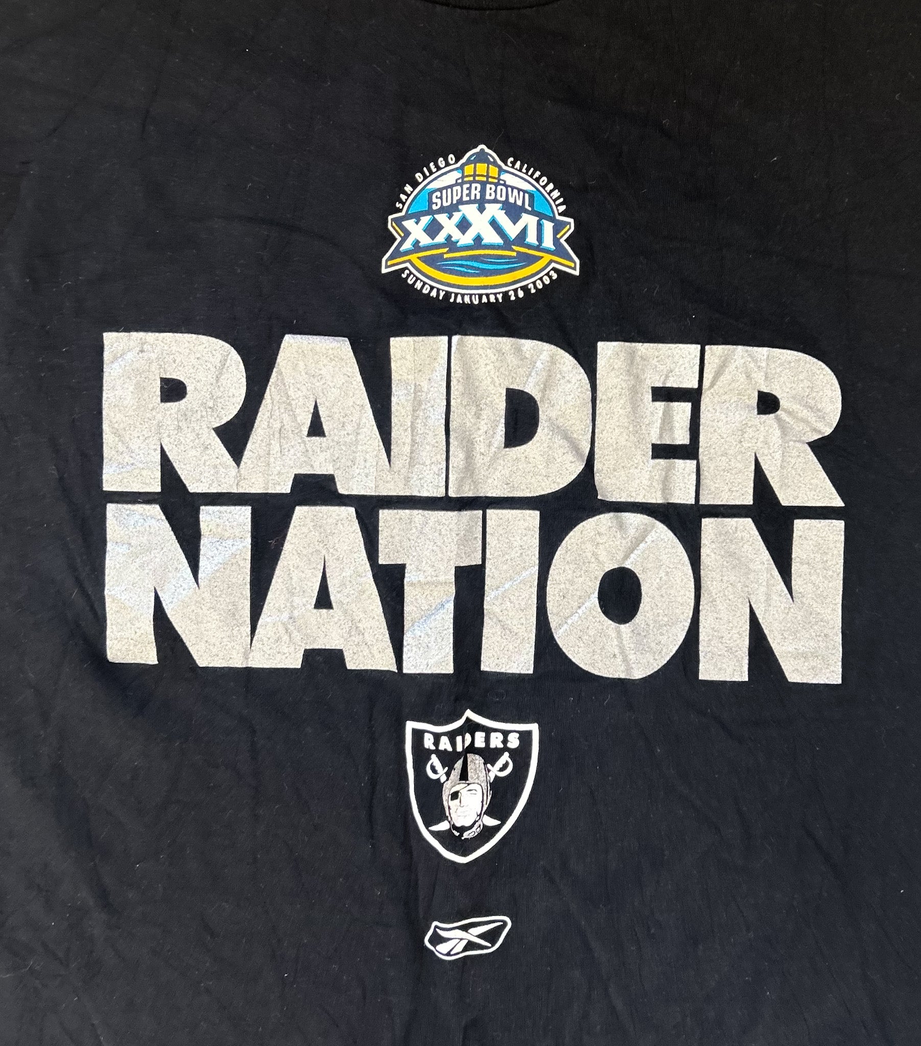 Vintage 2003 Original Super Bowl Final Raiders Nation Reebok Branded NFL T-Shirt XL Rare