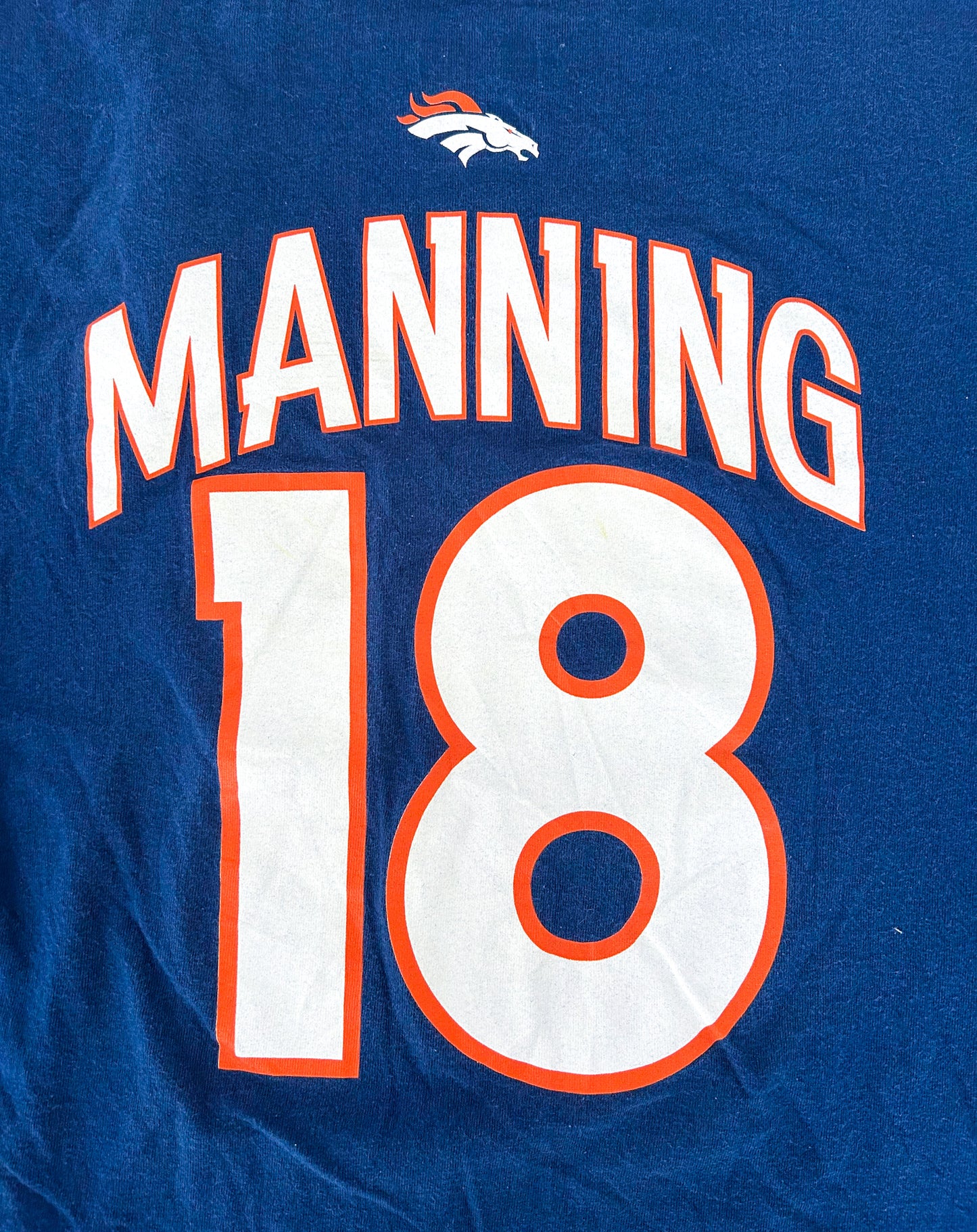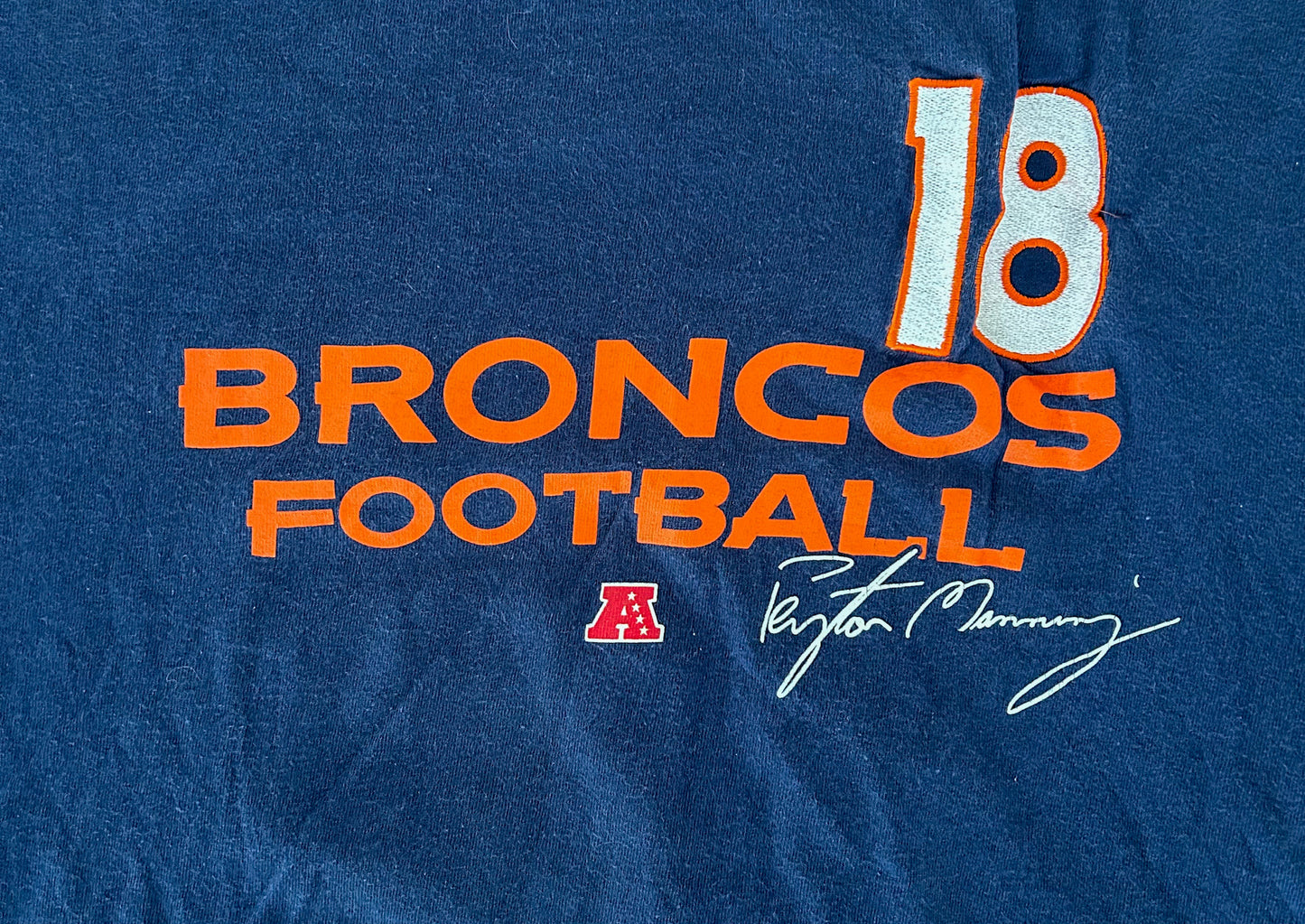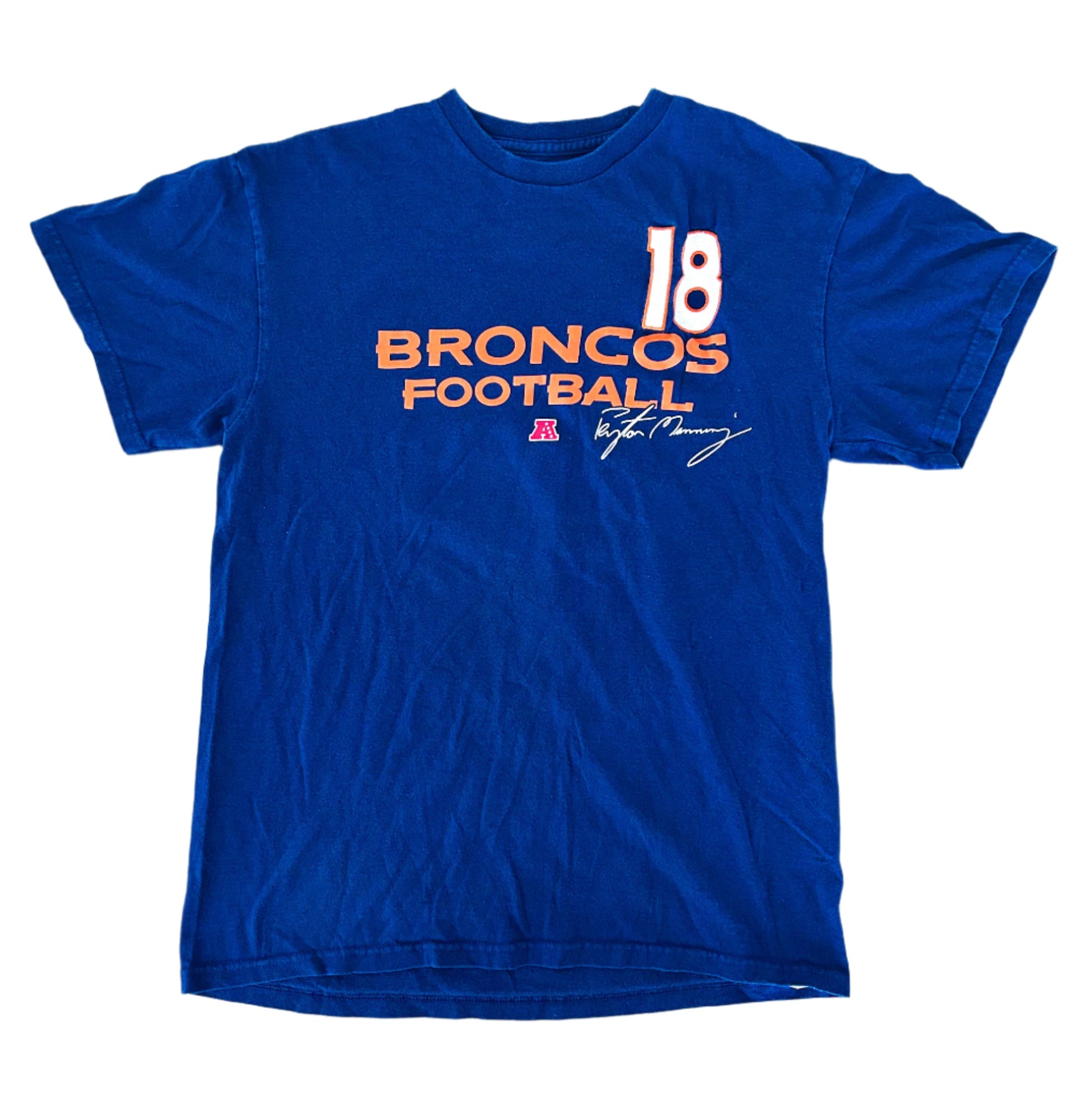 Vintage Denver Broncos Embroidered Peyton Manning NFL Blue Cotton T-Shirt Medium