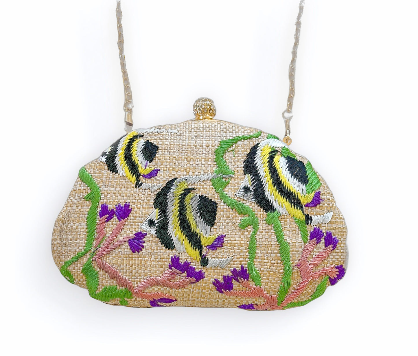 Vintage Embroidered Fish Hard Case Shoulder Bag