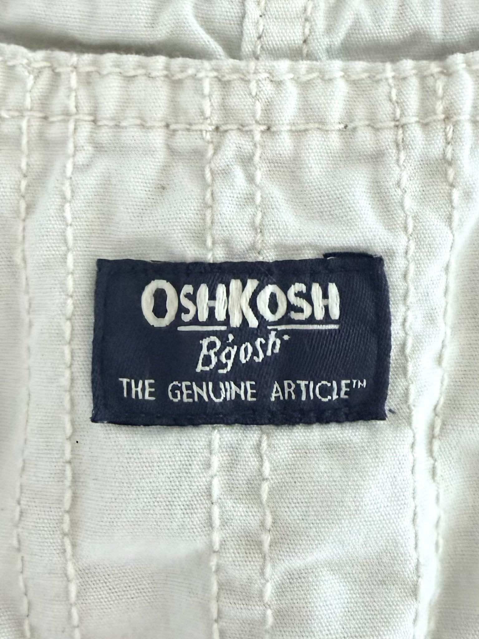 Featuring the OshKosh B’gosh “The Genuine Article” and Vestbak™ heritage labels, this piece reflects classic archival branding and long-standing craftsmanship associated with the brand.
