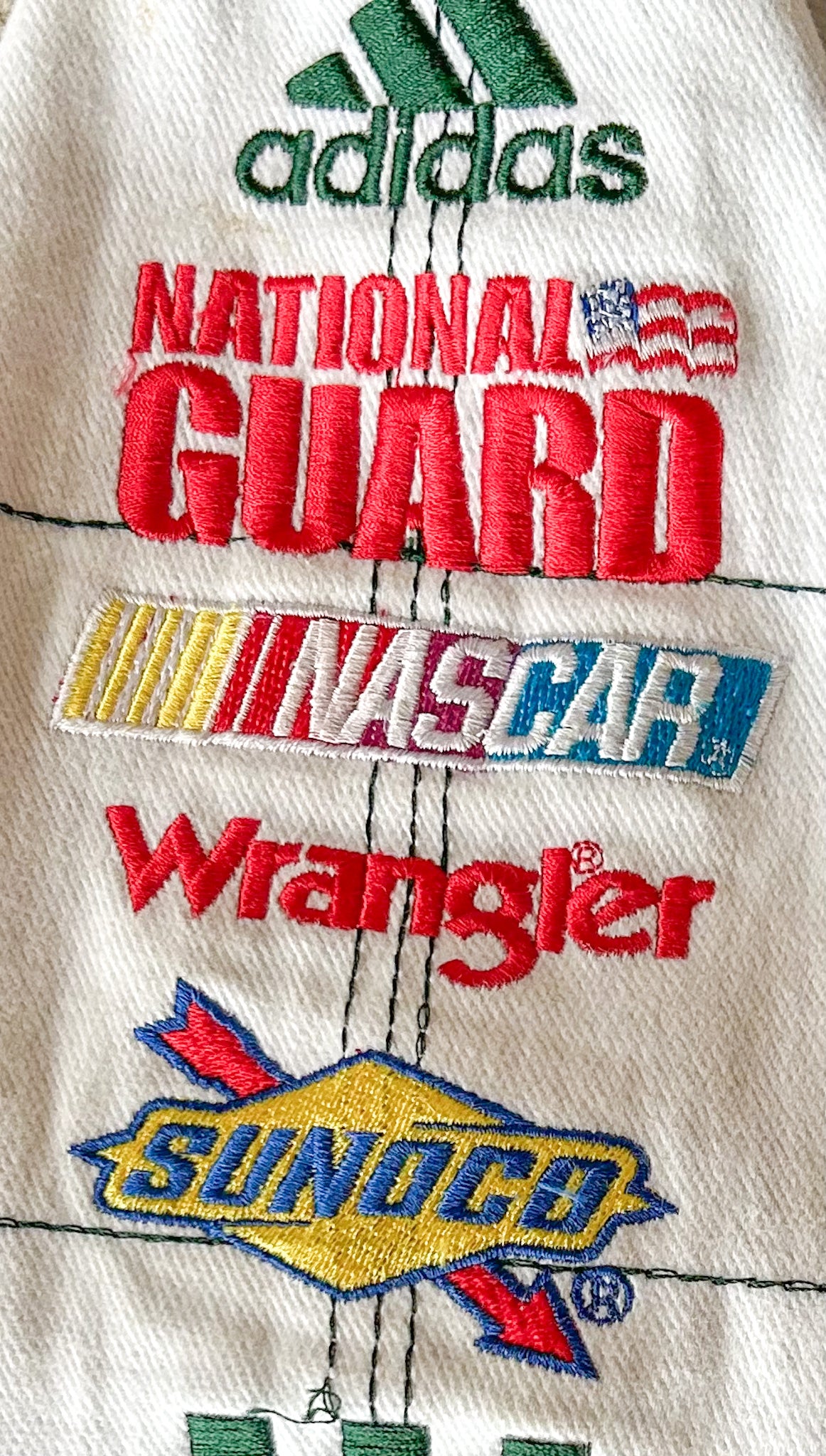 Additional Info: What an incredible jacket! 100% Cotton with all the sponsors beautifully embroidered. Sponsors listed are: Adidas,National Guard, Wrangler, Delphi, Mountain Dew, Amp Energy and many more! An officially licensed jacket by Nascar.