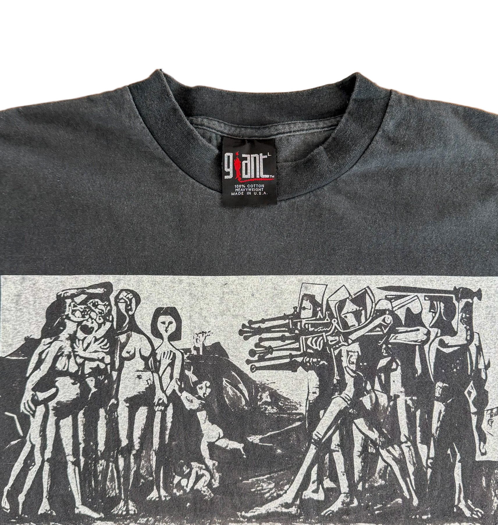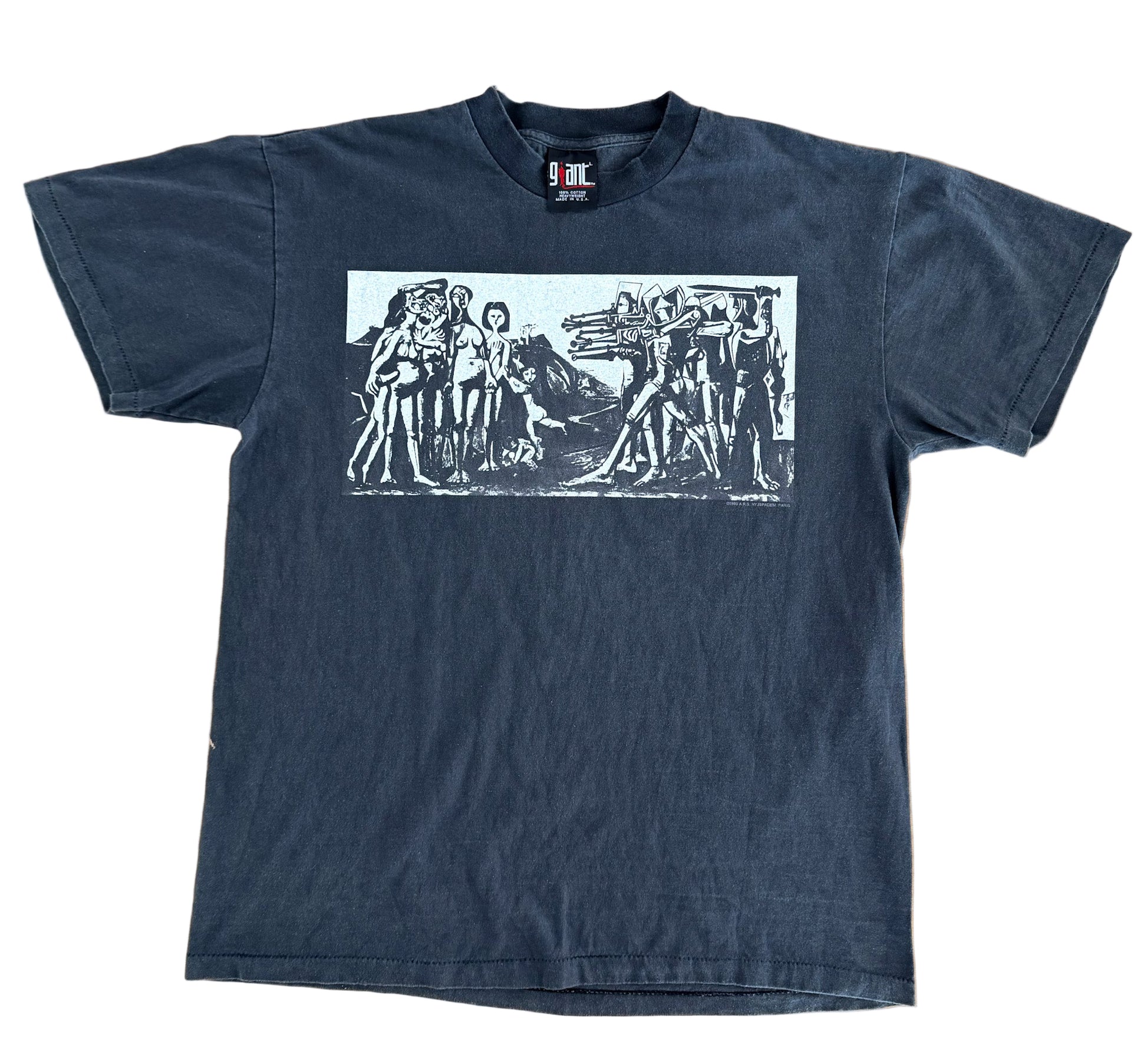 This vintage Nirvana Bosnia Benefit Concert T-shirt is a true holy grail for collectors and 90s grunge enthusiasts. Printed on the iconic Giant tag – Made in USA, this heavyweight 100% cotton tee features an original front graphic inspired by Picasso’s “Les Femmes d’Alger” and a back print listing Nirvana’s 1993 benefit show lineupwith L7, The Breeders, and Disposable Heroes of Hiphoprisy.