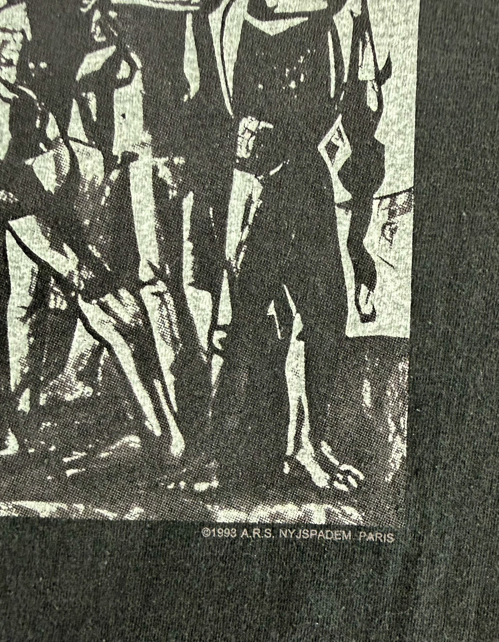 A rare relic from the height of Nirvana’s career, this tee commemorates a historic concert held to raise awareness about rape in Bosnia-Herzegovina — blending art, activism, and music history into one powerful collectible. The faded black single-stitch construction and perfectly aged soft cotton give it that authentic 90s vintage feel prized by collectors worldwide.