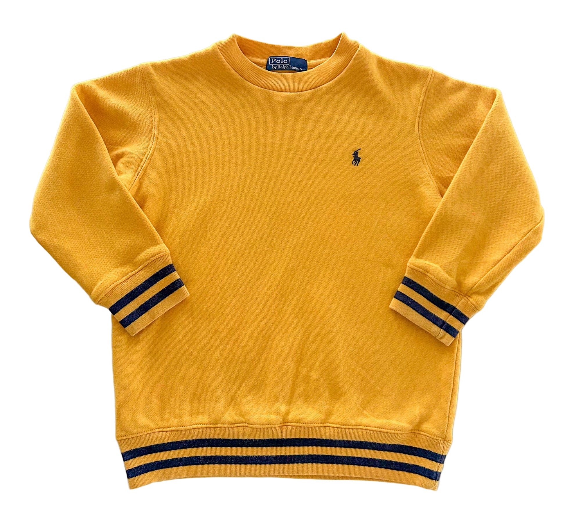 Vintage Polo Ralph Lauren Kids Yellow Sweatshirt – Crewneck Jumper with Navy Stripes – Size 6-7 Years
