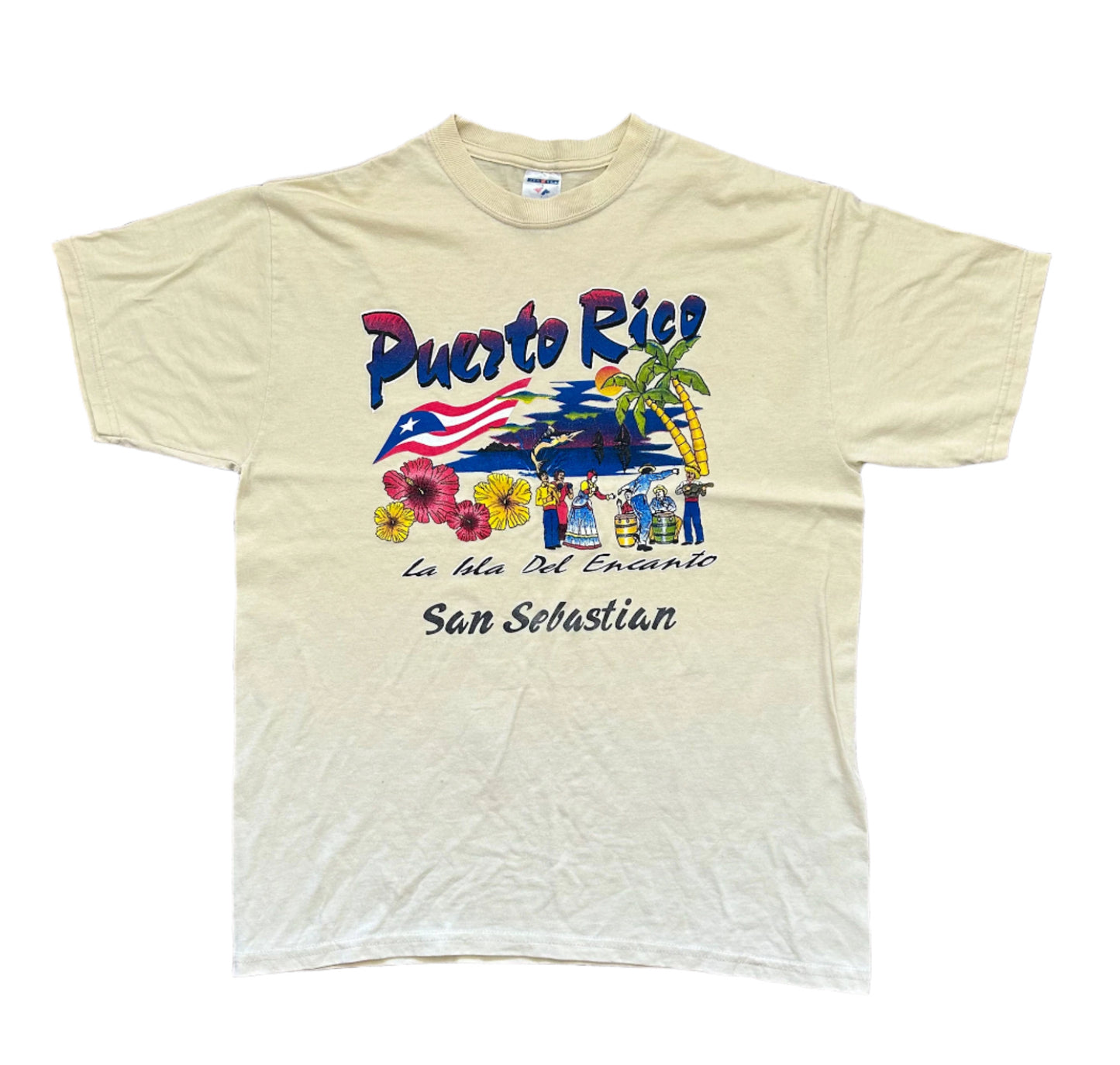 Vintage Puerto Rico San Sebastián Jerzees Label Beige Cotton Location T-shirt Large
