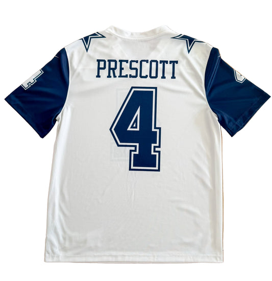Dallas Cowboys Dak Prescott #4 Nike Game Jersey – White & Navy NFL Football Fan Shirt, Size-Large