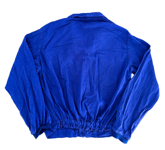 Vintage 70s Royal Blue French Chore Jacket – Workwear Utility Cotton Button-Up – Size Medium