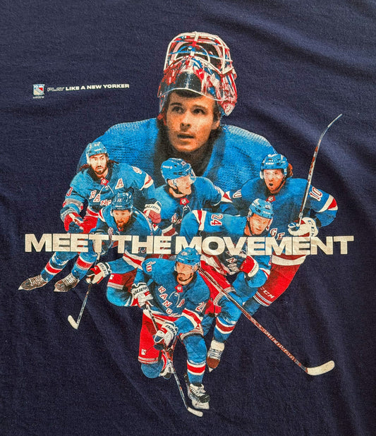 Vintage New York Rangers “Meet The Movement” NHL Hockey Graphic Navy Blue T-Shirt, Size-Large