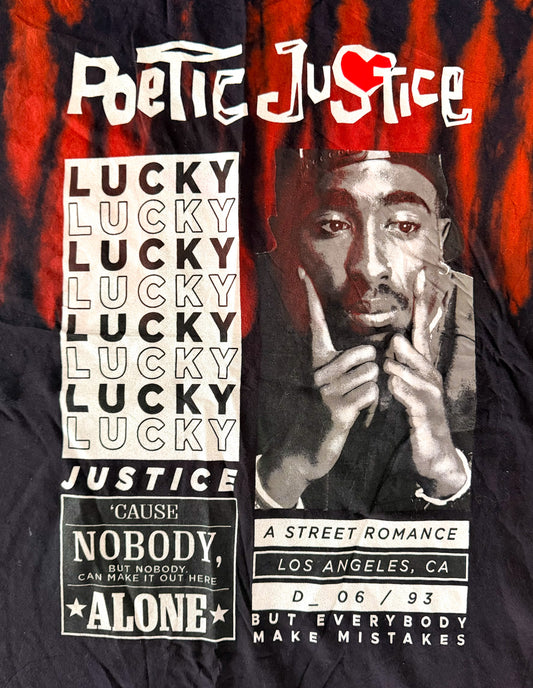 Vintage Poetic Justice Tupac Graphic Tie-Dye – 90s Hip-Hop Rap T-shirt– Red & Black Streetwear, Size-XL